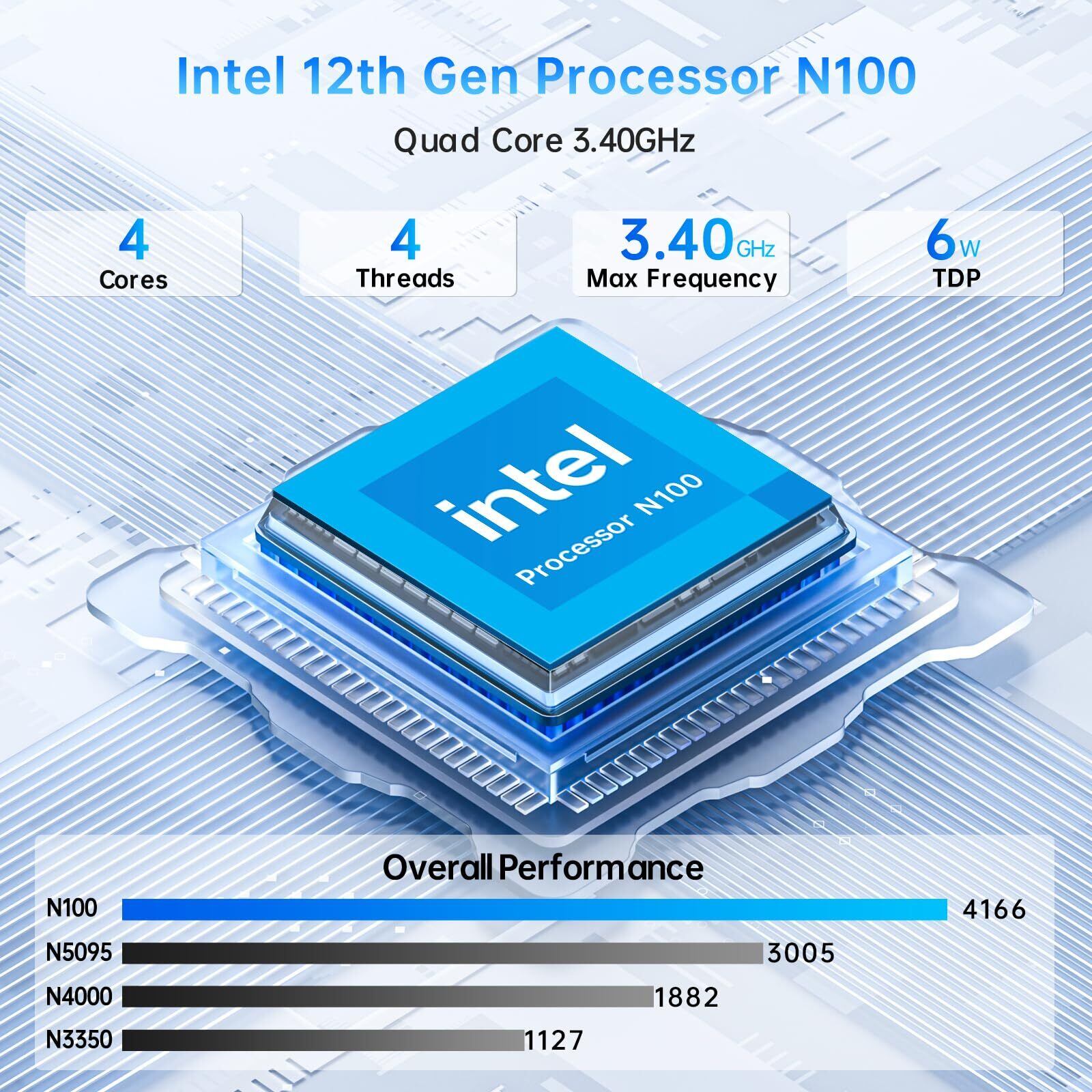 Mavsloly ファンレス産業用 PC、N100 プロセッサ (4C/4T、最大 3.4GHz)、16G RAM 256G SSD、デュアル LAN、2*HDMI、1*DP トリプル ディスプレイ、2*COM RS232、Windows 11 Pro 搭載ミニ コンピューター
