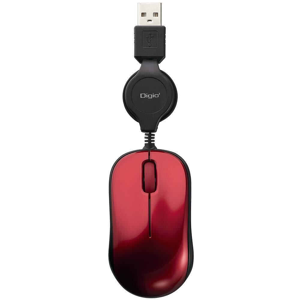 Digio2 マウス 小型 巻取 有線 3ボタン BlueLED レッド Z8643