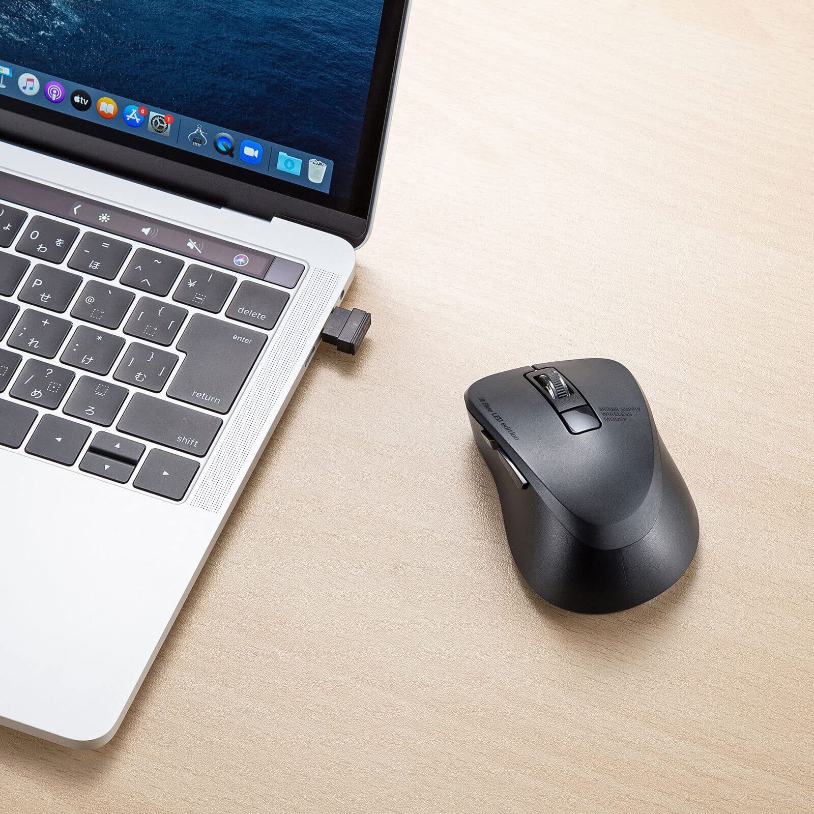 サンワサプライ マウス ワイヤレス Type-C接続 静音 5ボタン(戻る・進むボタン搭載) ブルーLED 中型 ブラック MA-WBLC153BK
