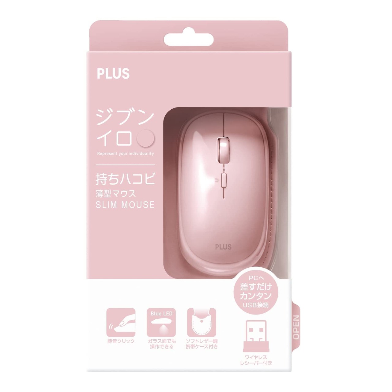 PLUS マウス ジブンイロ 薄型 持ちハコビ マウス ピンク TW-MO001 428-835