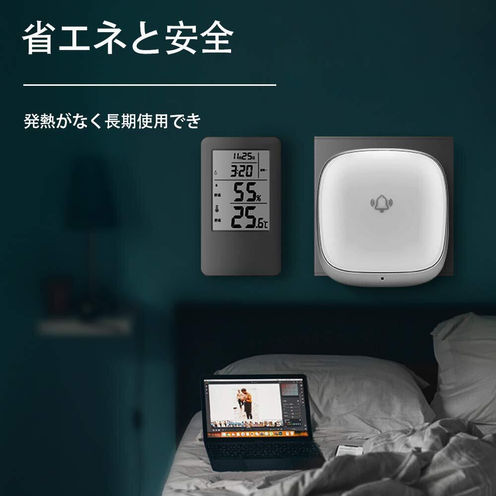 【200m無線範囲】 このドアベル呼び出しセットは高感度の受信機を採用して、壁、木ドアー、鋼ドアーなどに安定受信でき、2階建ての建物でもご使用いただけます。障害のない場所でワイヤレス通信が最大200メートルの長距離まで届けます。広い家でも安心できます。介護などに最適、チャイムで離れた場所にお知らせ。