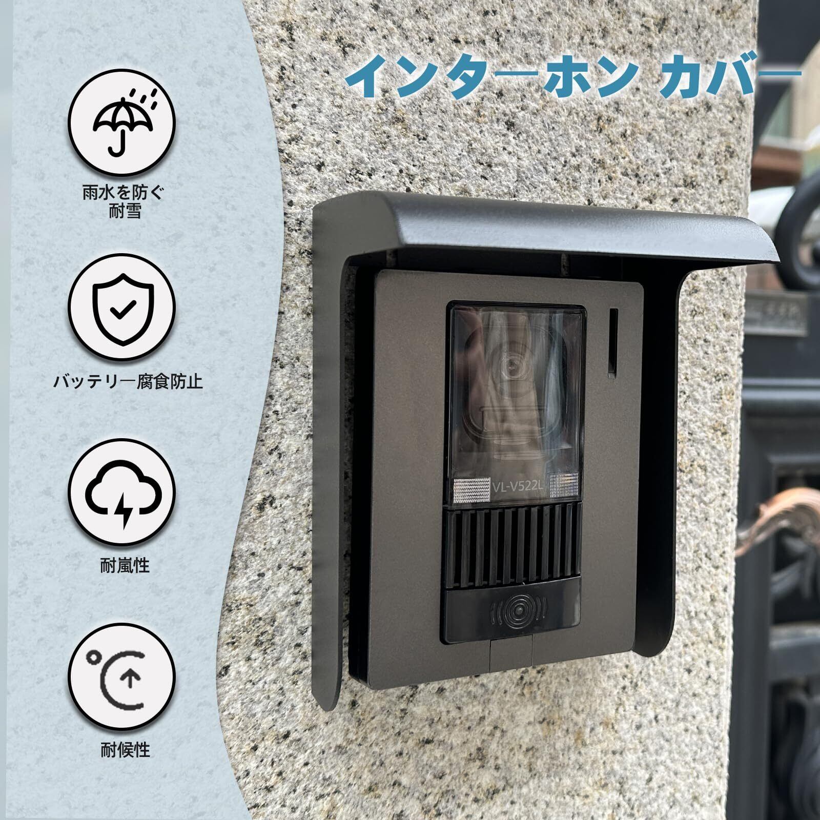 屋外インターホンカバー 玄関ドアホン雨よけ ワイヤレスドアホン日除けカバー 超硬質メタル 取り付けが簡単(ブラック)