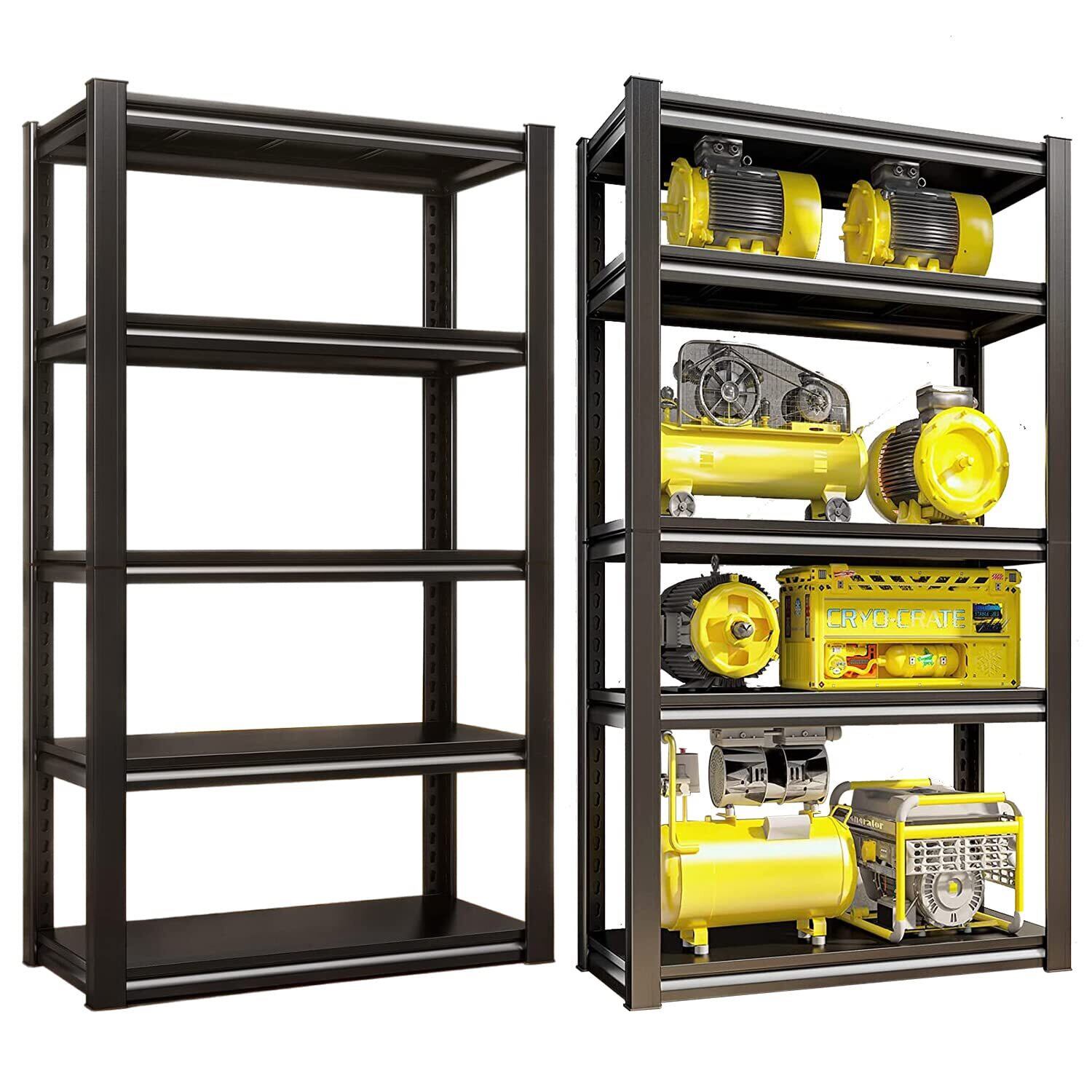 【調節可能な収納ラック】金属製の棚は取り外し可能な2つのユニットで構成されており、必要に応じて別々に使用できます。 収納ラックの高さは、さまざまな収納要件に合わせて自由に調整できます。 3段目のみ固定で高さ調節不可、残りの4段は自由に高さ調節できるので、整理・収納したい物のサイズに合わせて調節でき、ガレージ整理・収納棚としても優秀。