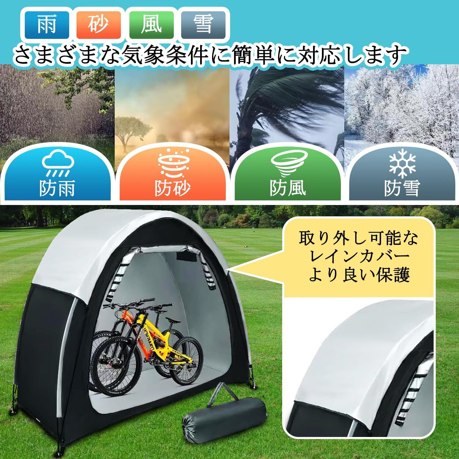 仕様: 自転車 テント展開サイズ:200×80×165 cm。取り外し可能なレインカバーのサイズ:196×93.5 CM。大人用自転車2台収納可能。自転車 テントとしてだけでなく、手持ちの園芸工具、家具パッド、芝刈り機、クーラー、プールおもちゃなどの屋外収納テントとしても使用できます