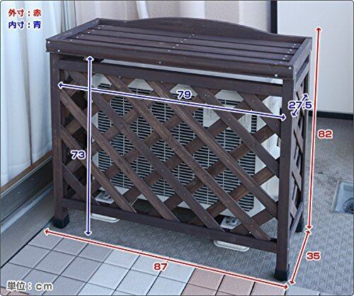 [山善] エアコン室外機カバー 幅87×奥行35×高さ82cm 天然木SPF材 エアコンガード ベランダ バルコニー ガーデンマスター ダークブラウン KOAC-8735