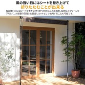 ●風の強い日にはシートを巻き上げて折りたたむことが出来ます。