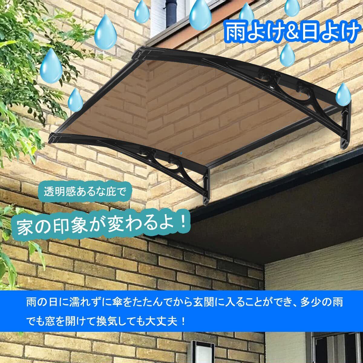 EC Hometec 屋根庇 住宅庇 ポリカーボネート採用 200x80cm ひさし 雨よけ・日よけに 窓/玄関などに設置可能 玄関庇 (茶色)