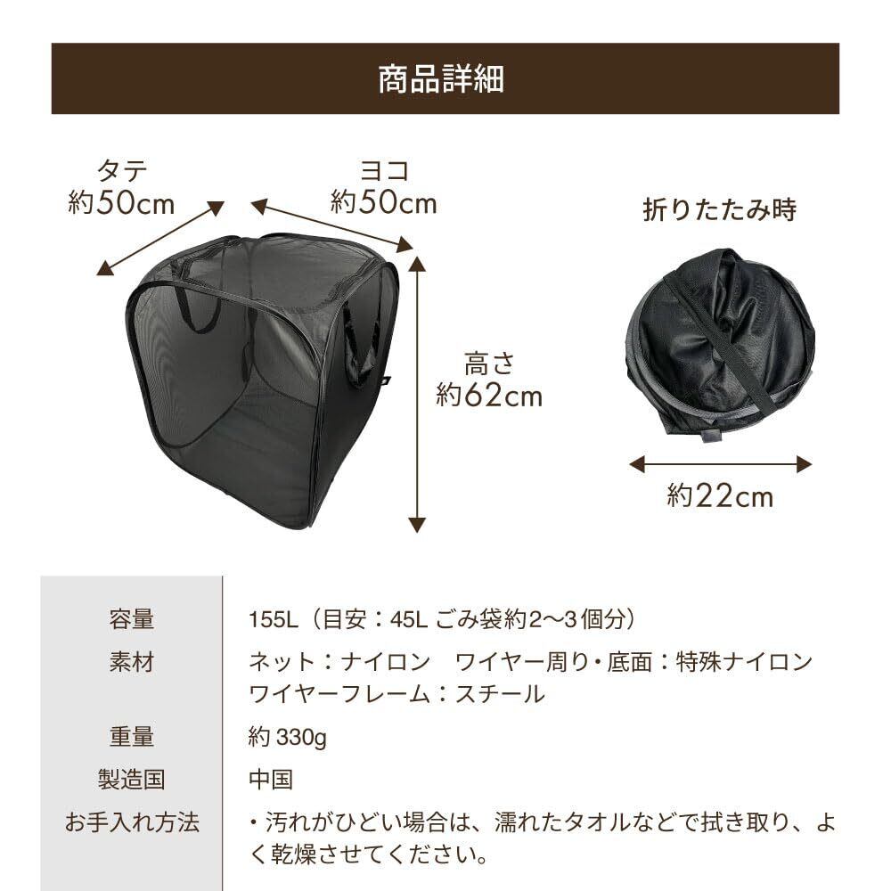 ポイント2、大容量 50×50×62cm 155L 45Lゴミ箱2~3袋分