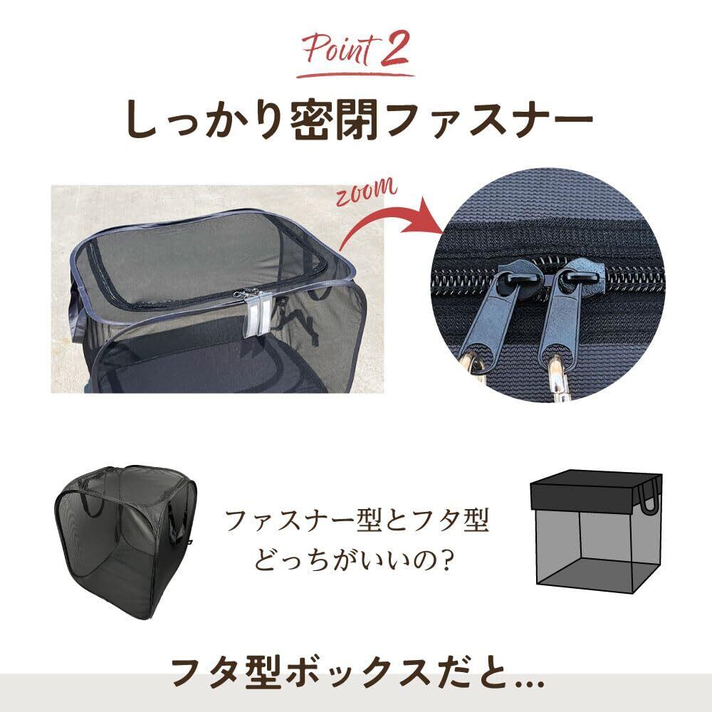 ポイント1、網目の細かい高強度ネットでしっかり防御 ファスナー開封なので隙間なし! 小動物の侵入も防止 網目が大きいネットはくちばしで突かれゴミが荒らされる恐れがあります。