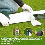 【幅広テープ】:15cm超ワイドタイプなので、少し歪んでしまってもちゃんと貼れることができ。人工芝ジョイントを綺麗に継ぎ合せることができ、素人でも一度だけ簡単に仕上がりました。