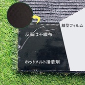 【素材】人工芝 片面テープは不織布とホットメルト接着剤でコーティングされており,防水で適応温度は約-10℃〜60℃なので、ほとんどの温度環境で使用することができます。耐摩耗性、耐候性があります。