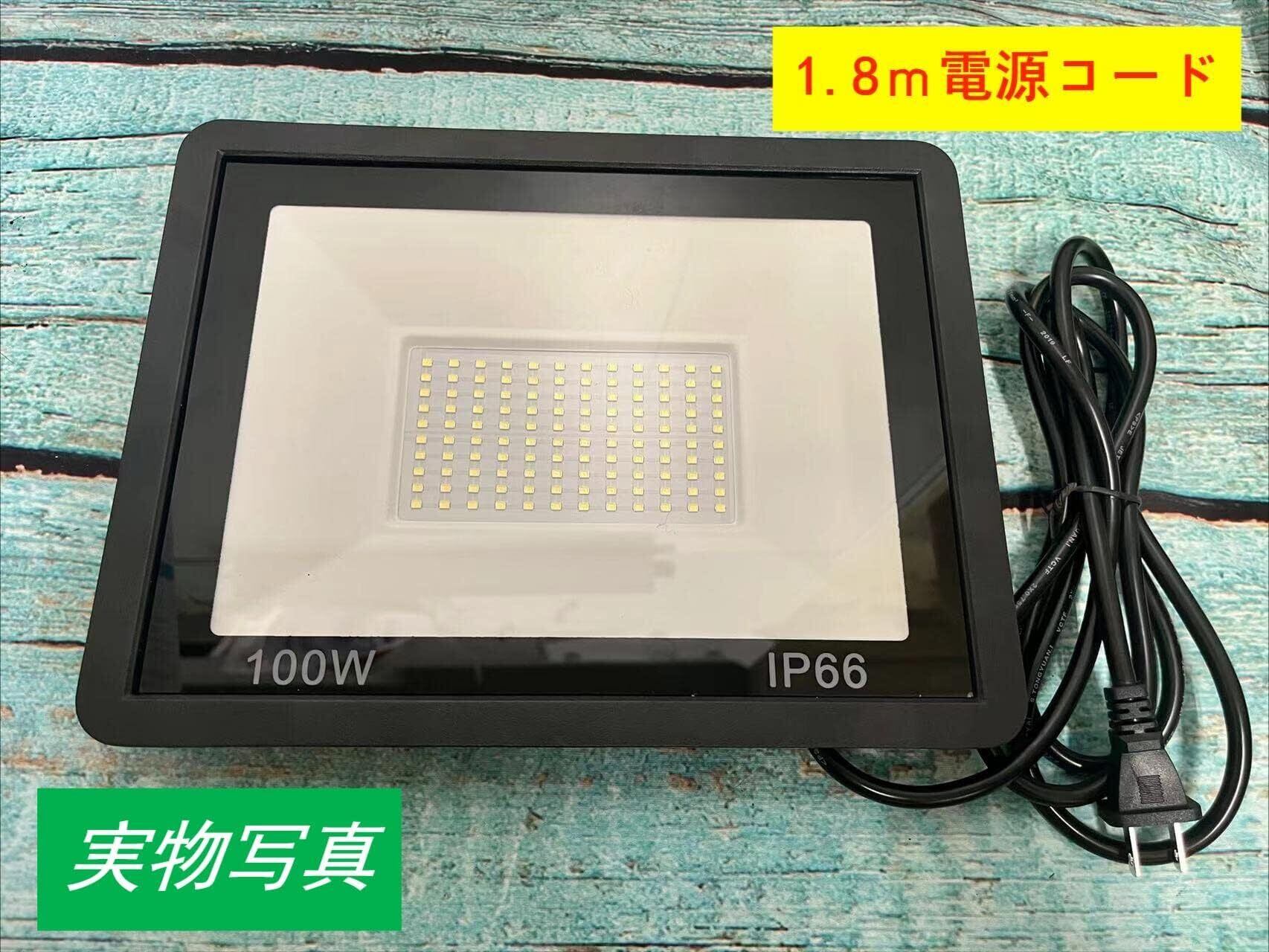 IP66防水 LED 投光器 作業灯 100V/200V 85-265V対応 100W 15000LM フラッドライト 省エネ 高輝度 アース付きプラグ PSE適合 1.8Mコード ワークライト 駐車場灯 看板灯 工場 倉庫照明 体育館 ガレージライト 街路灯 昼光色 屋内 屋外兼用 (1個) (2台)