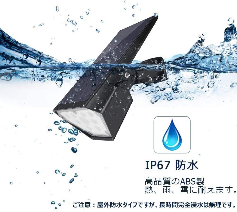 「耐久性とIP67防水防塵」 ソーラーパネルで業界先端の単結晶パネルを採用し、屋外使用中の損壊を最大限避けられます。ライトはIP67防水レベルが達成して、悪天候でも耐えるように設計されています。屋根のない場所、外からの雨にさらされるような場所に設置しても安心です。ソーラーライトは他より耐久性が抜群です。ご注意:屋外防水タイプですが、完全浸水は無理です。
