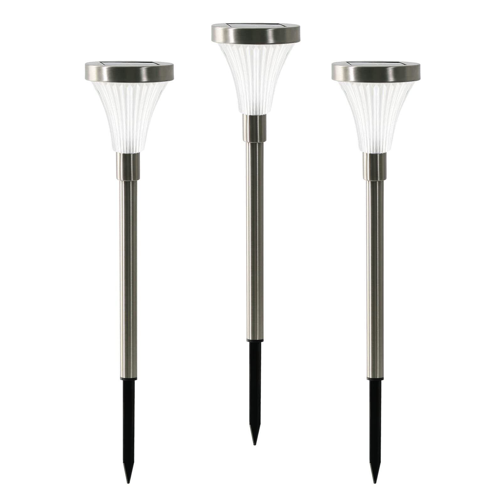 GWSOLAR【ステンレスポール/ソーラーライト3個組】ホワイト色LED、スタイリッシュ・スリムタイプ/モダン的なおしゃれな光/地中差し込みタイプ/光センサー夜間自動点灯・消灯/明るさ:10ルーメン ・ 頑丈耐久なステンレスポール/簡単差し込み設置/ガーデン・花壇、パーティ装飾・パーク小道、玄関先 / 304ステンレス材質、日亜製 LED、GWソーラー 型番:GW-SS122/W