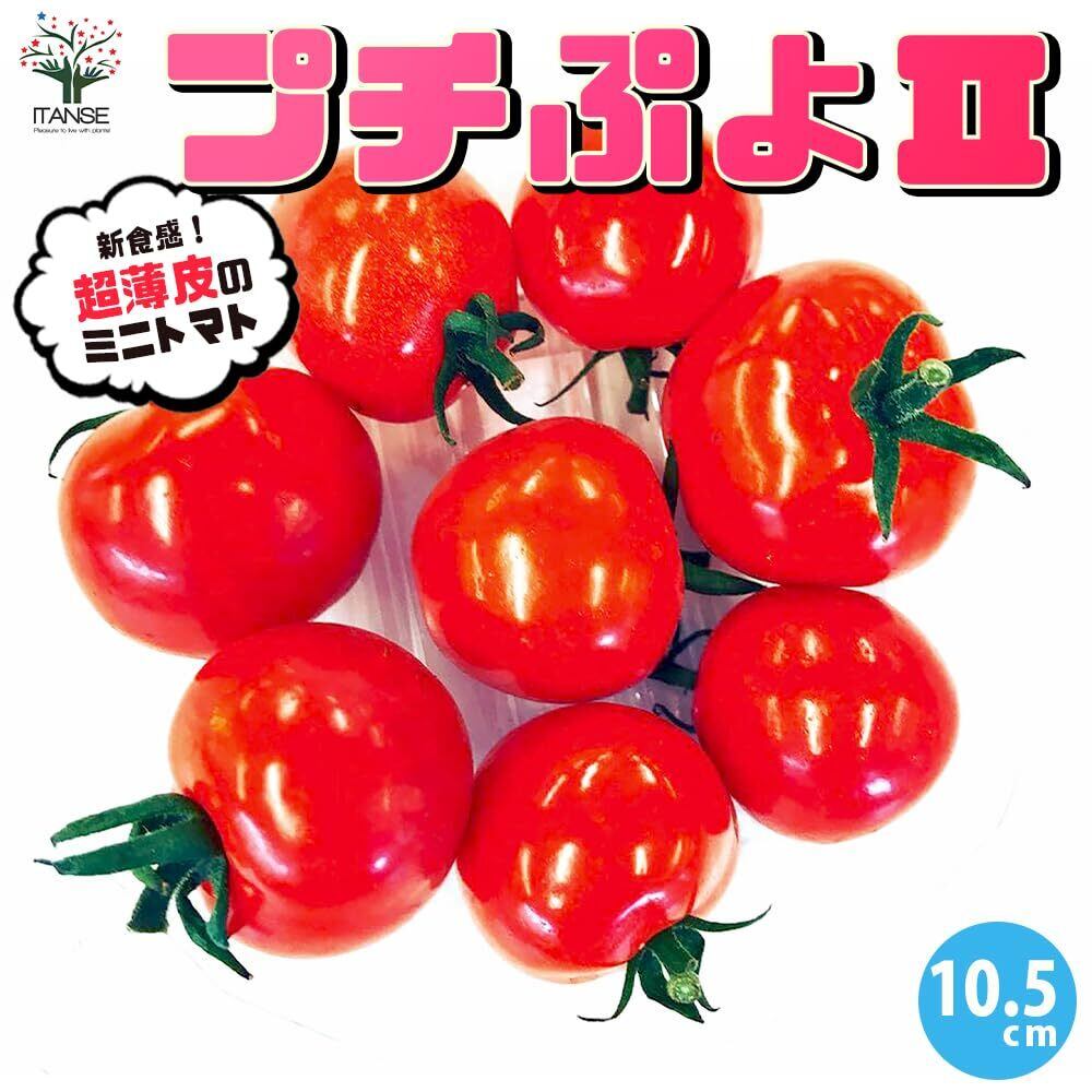 新食感!薄皮ミニトマト苗 プチぷよⅡ 赤実【野菜苗 10.5cmポット自根苗/2個セット】赤ちゃんのホッペのように皮がプヨプヨに柔らかい、新食感ミニトマト!!丸ごと口に放り込むと、熟したサクランボを噛んだ時のように食感が柔らかく、皮の存在がほとんど気にならない感じで、中から果汁が口に広がります。酸味は強くなく、甘さが強く感じられ、少しあっさりとしたフルーツを食べているような食味です。