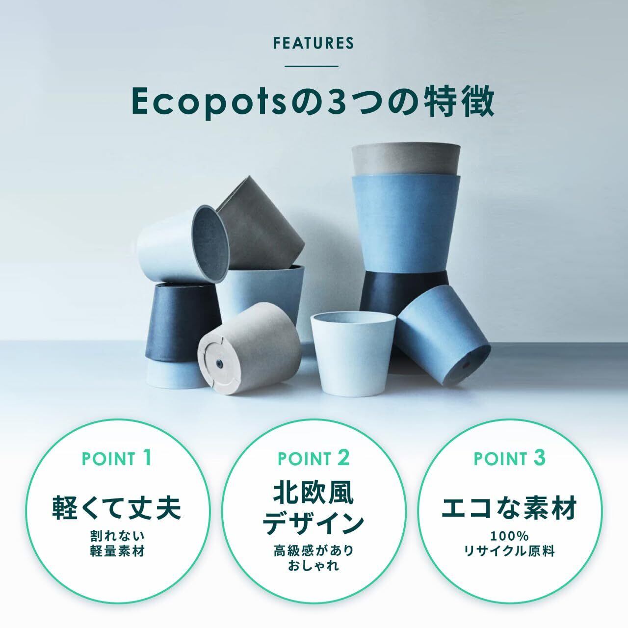 ECOPOTS Amsterdam エコポッツ AND PLANTS アンドプランツ (ブルーグレー, 鉢S(6号))