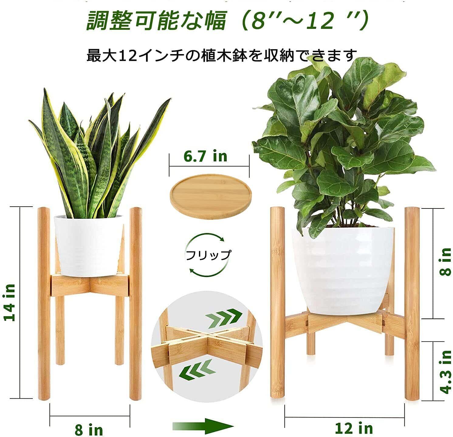 【新春セール】フラワースタンド 花台 鉢スタンド 植木鉢台 トレイ付き 幅20-30cmまで調整 て 竹製 植木台 て 100KG耐荷重 花ポットホルダ 組み立て簡単 鉢置き 屋外室内 | BOSSO