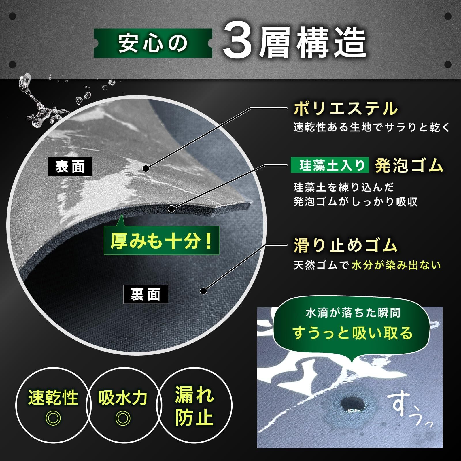 Kaiju Plant 怪獣ドライマット すぅっと吸水 珪藻土練り込みマット 室内園芸 スチールラックにピッタリ フリーカットOK (ブラック, 90サイズ)