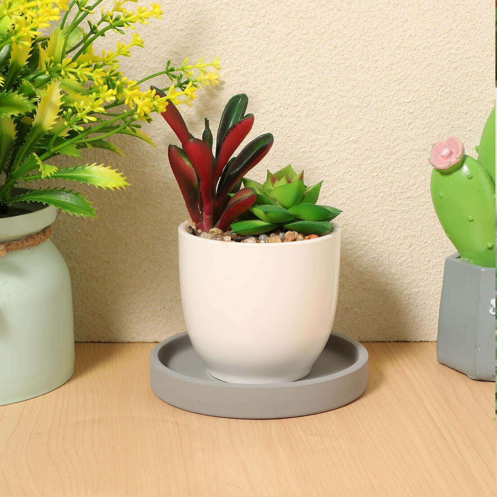 OUNONA 鉢受皿トレー 鉢皿 プランター用受皿 ラウンド 陶器 ダークグレー 浅皿 水切りかご 観葉植物の清潔グッズ 2個セット 植木鉢台 花鉢置き 収納 サボテン鉢 多肉鉢 インテリア 部屋 オフィス 園芸用品