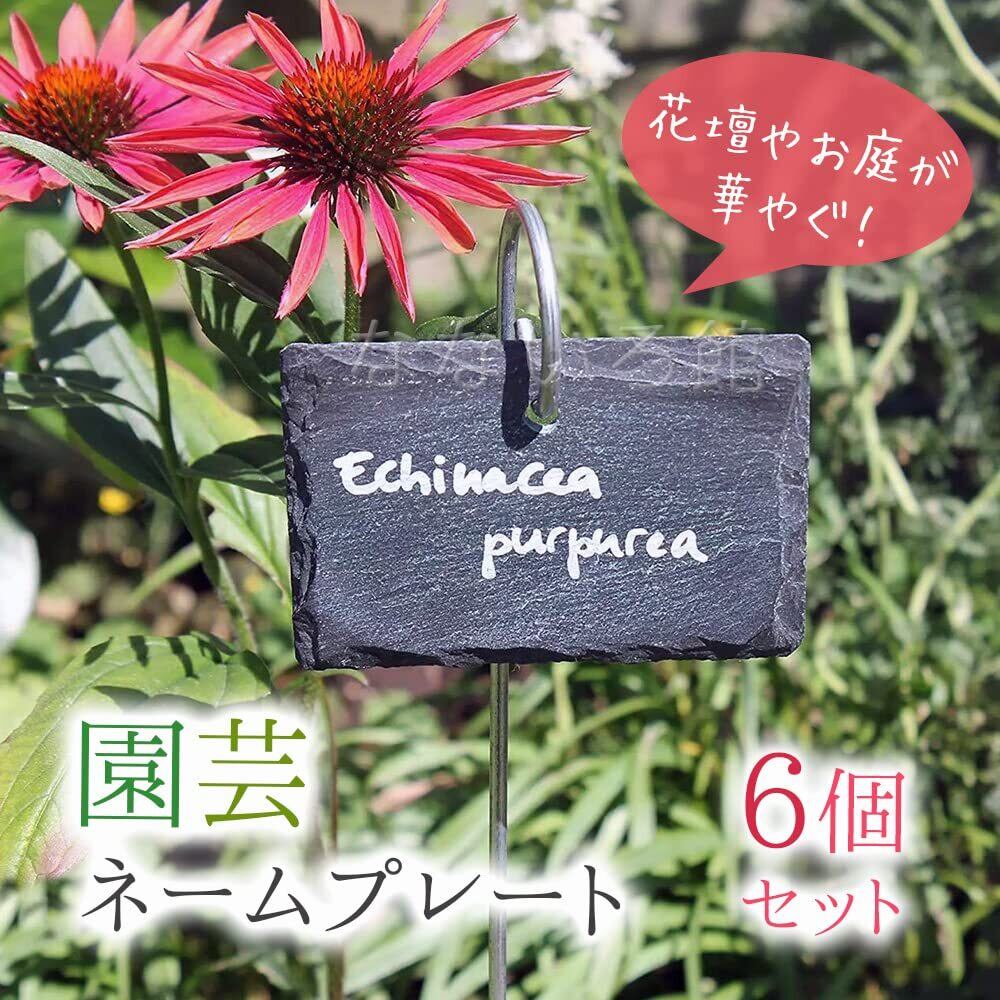 (なないろ館)園芸 ネームプレート 園芸ラベル 石の板 ガーデニング 花壇 家庭菜園 ハーブ園 植物ラベル おしゃれ (6個)