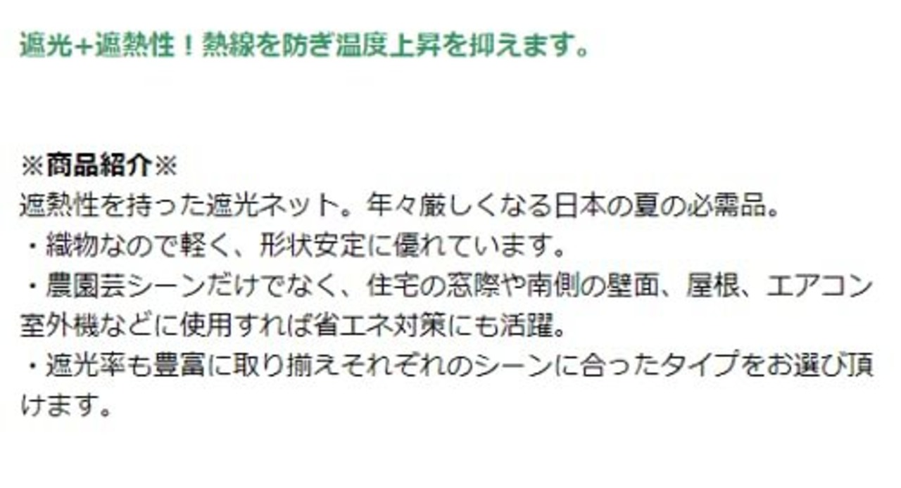 ※ネットは遮光率に応じて日光を遮りますが、積極的に冷却する機能はありません。