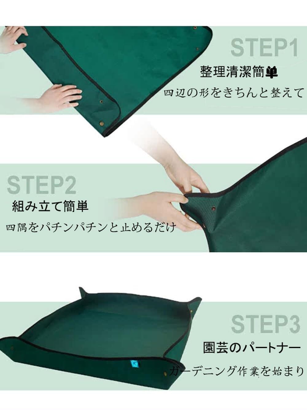 <p>高品質素材:植え替えようシートは市販品より厚手加工され、より耐久性を持ちます。環境に優しい、無毒、耐久性があります。</p> <p>撥水性素材 :ガーデニングシート トレー表面は撥水コーティング加工植栽や水やりの際に床に水滴が漏れる、汚れてもきれいに水洗いして再び使用できます。</p> <p>ガーデンー作業の必要品 :園芸用土壌交換マット ガーデンクッション プランティングシート 防水 汚れ防止 収納簡単 土壌 多肉植物 園芸用品など大活躍します。特徴:①これにより、屋内または屋外のガーデニングを行うたびに混乱するのを防ぐことができます。②多肉植物や他の植物や花の屋内移植に最適なサイズ。③家庭菜園に最適です。鉢の土を交換し、植物を刈り取り、バルコニー、床、または卓上を清潔に保ちます。④あらゆる種類の土壌に適しており、いつでも移植でき、天候の影響を受けません。⑤庭で作業するときは、植物の鉢植えの防水シートにひざまずくことができます。これにより、衣服が整頓され、清潔に保たれます。⑥この植物ポッティングマットは、ガーデニングや植樹愛好家への素晴らしい贈り物になります。<p>