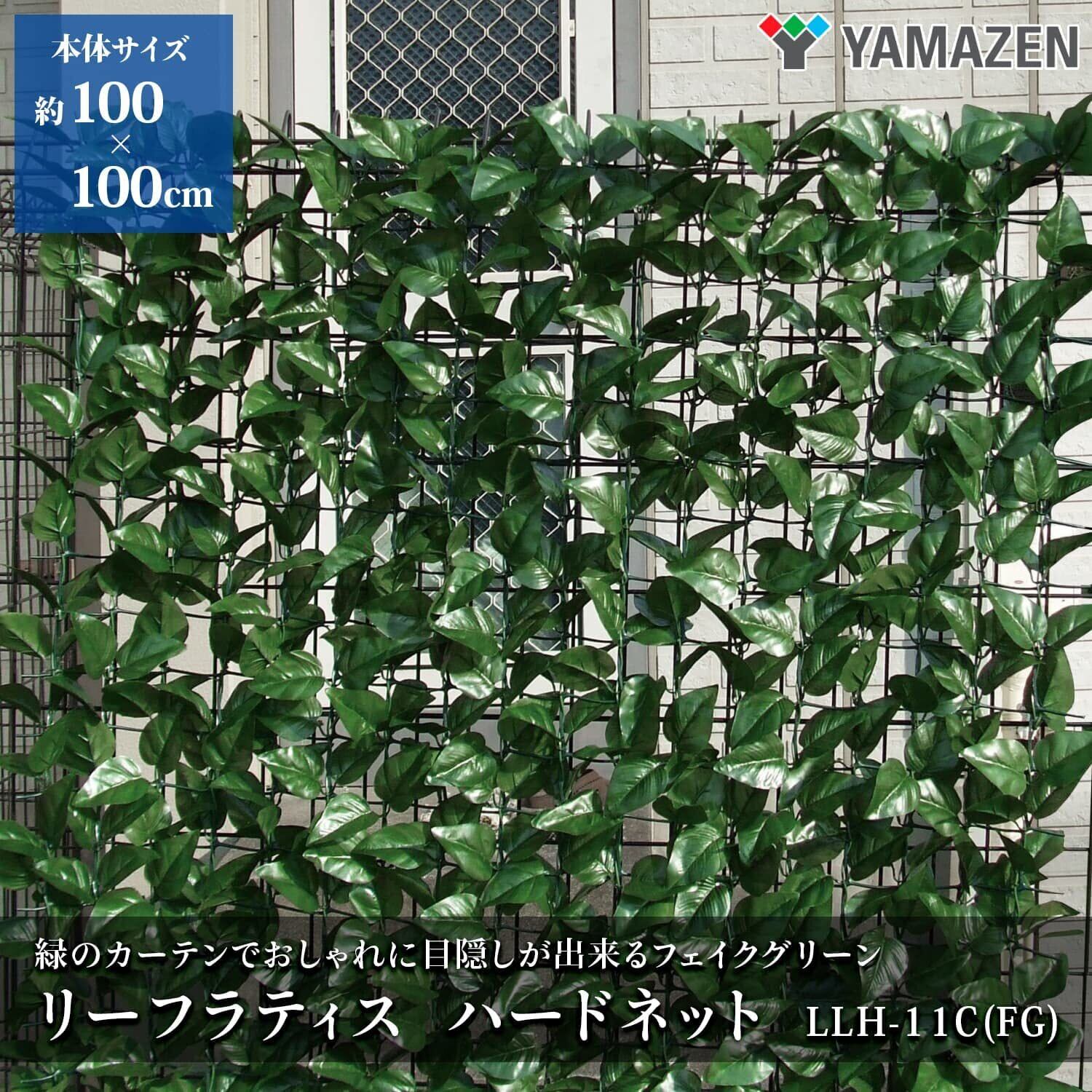 山善(YAMAZEN) リーフラティス 約100×100cm ハードネットタイプ 目隠 装飾 フェイク ベランダ テラス グリーンフェンス グリーンカーテン 日差し 簡単設置 日よけ 日除け フォレストグリーン LLH-11C FG