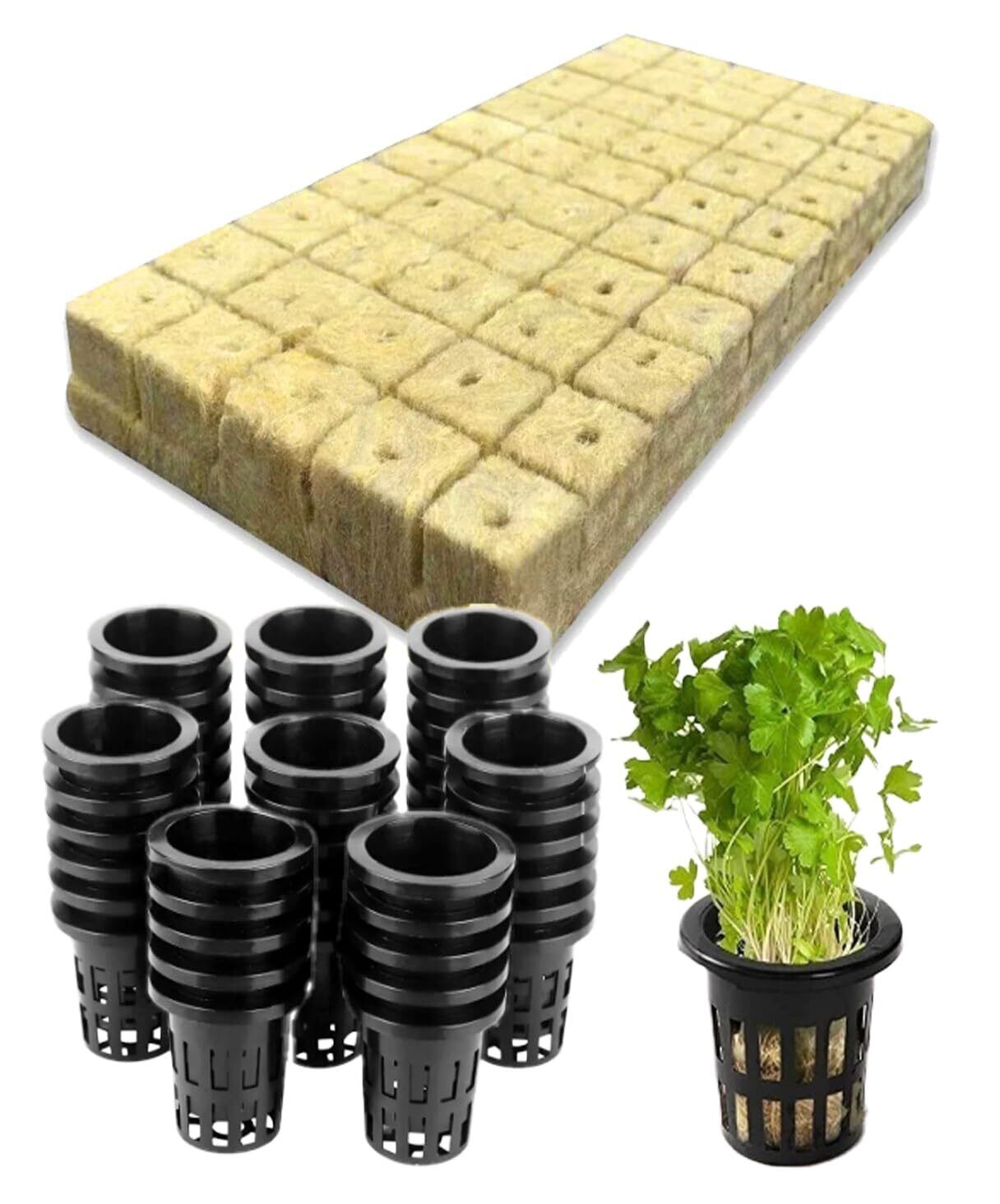 水耕栽培用ロックウールブロックと育苗ポット50個セットです。