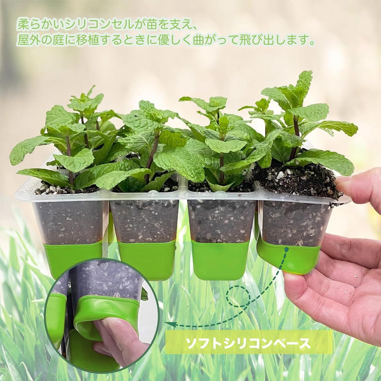 排水穴付きの柔軟な「小部屋」柔らかいシリコンセルが苗を支え、屋外の庭に移植するときに優しく曲がって飛び出します。 このシステムは苗木への圧力を軽減するように特別に設計されており、植物にダメージを与えることなく簡単に根を土ごと完全に取り除くことができます。セルの下部にある排水路は、過剰な水を排水して理想的な水位を維持し、植物の根の循環を非常に効率的に維持し、根の過飽和を減らします。