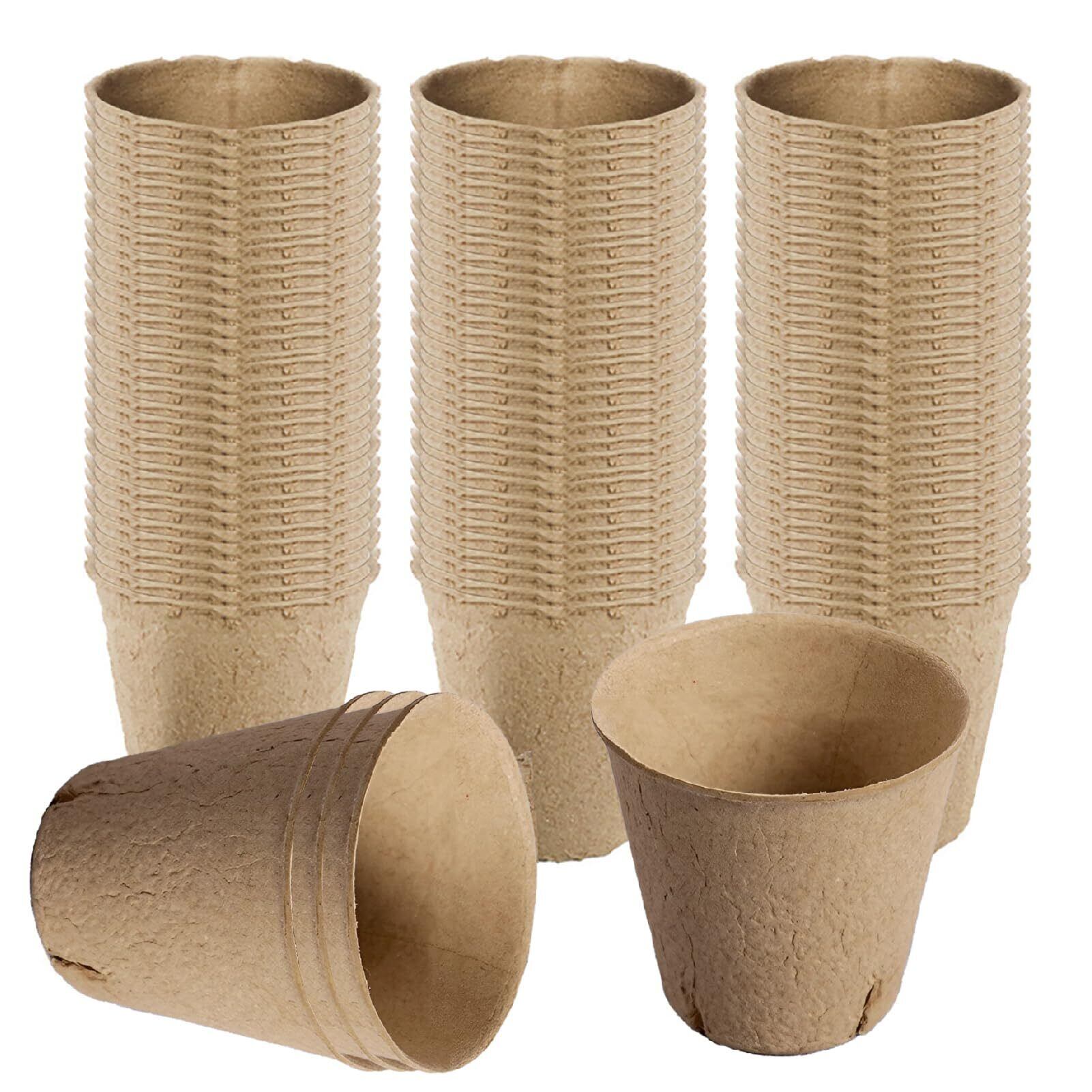 Famimueno 育苗ポット トレイ トレー カップ 箱 種まきポット 園芸 用品 農業 生分解 (200, ブラウン/底穴あり/口径8cm)
