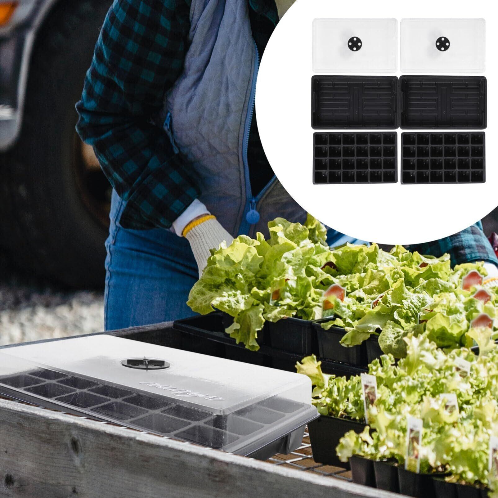 【特価セール】NUOLUX 育苗トレー 育苗ポット 種まきハウス 透明蓋付き 24穴 2個 育苗トレイ 育苗箱 種まきポット 種蒔き器 保育園ボックス 温室繁殖箱 苗ポット 苗運搬 通気性 水分保存 保温 野菜栽培 園芸用品 黑 | BOSSO