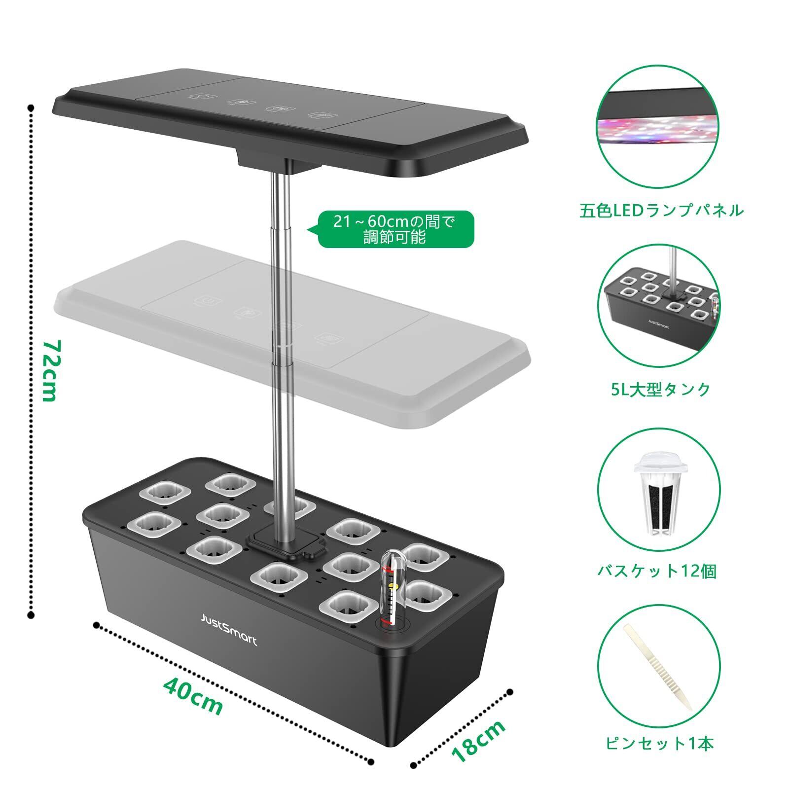 JustSmart 水耕栽培キット LEDライト付き 自動水循環システム搭載 12株同時育苗 室内 水耕栽培 おしゃれ 家庭菜園 キット 高さ調節可能 IGS-20SE ブラック
