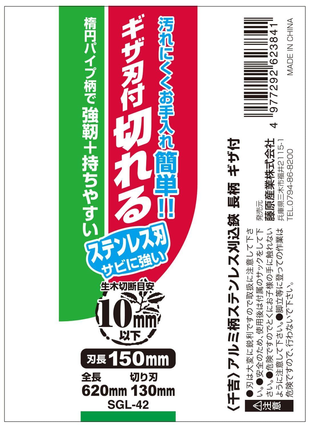 千吉(Senkichi) アルミ柄ステンレス刈込鋏 長柄 ギザ付 刃長150mm 切断能力約10mm SGL-42