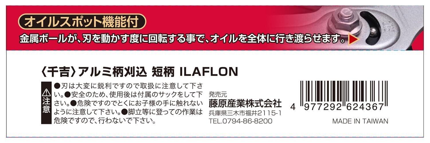 仕様:フッ素加工刃・オイルスポット機能・楕円パイプ・短柄