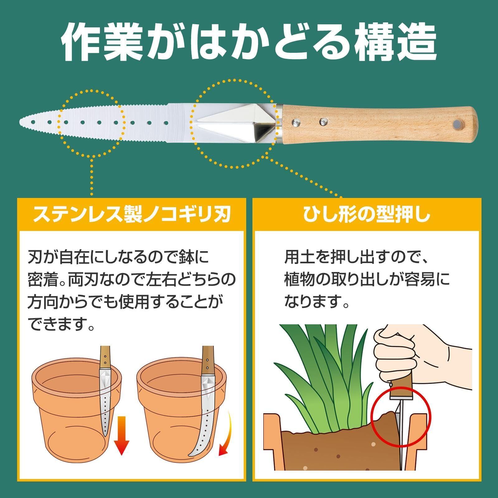 【2022最新】コモライフ しなるノコ刃の植替えヘラ 植物 植替え 植え替え 園芸用 ヘラ しなる ノコ刃 両刃 ステンレス製 天然木 ひし形 型押し 土 鉢植え 鉢 移植 根さばき 株分け ガーデニング 【刃の長さ:約20cm】 | BOSSO