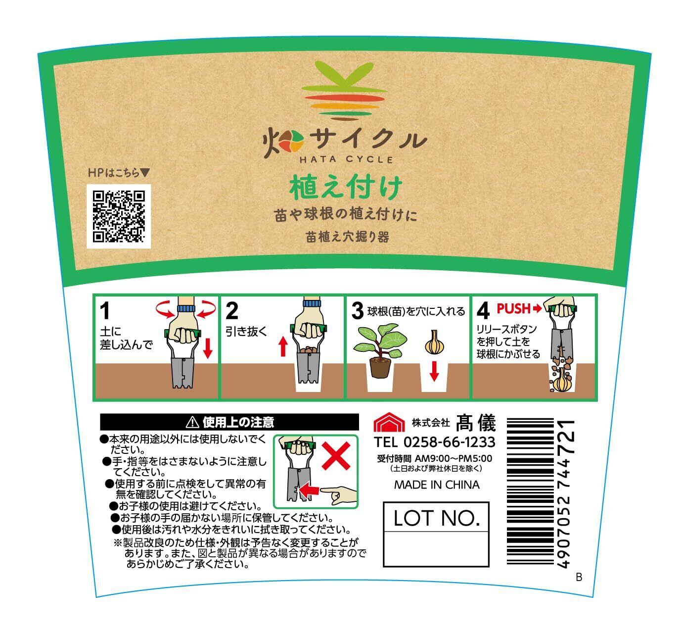 髙儀(Takagi) 畑サイクル 苗植え 穴掘り器 φ60mm 苗 球根 植え付け 差し込む 引き抜く リリースボタン 土をかぶせる 簡単植え付け 高儀 たかぎ TAKAGI