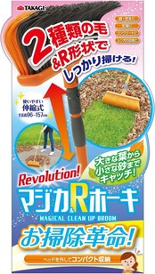高儀(Takagi) マジカR(ル)ホーキ【2種類の毛&R形状】【全長約96~157cm伸縮式】【コンパクト収納】 マジカルほうき 芝生 ほうき 熊手 レーキ 落ち葉集め 玄関 ベランダ ガレージ掃除
