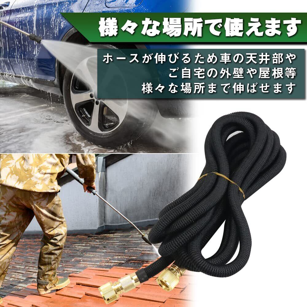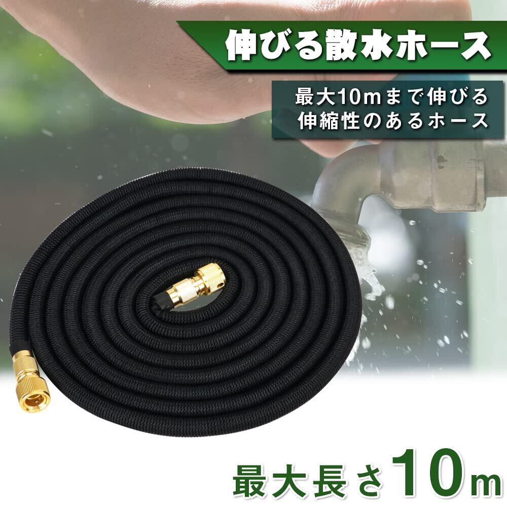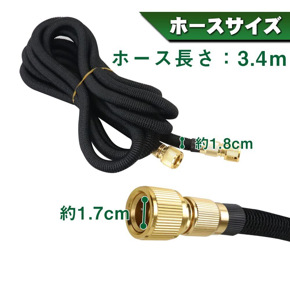 散水ホース ガーデンホース 3倍伸びる 3層構造 軽量設計 コンパクト 水やり ガーデニング 洗車 (3.4~10m)