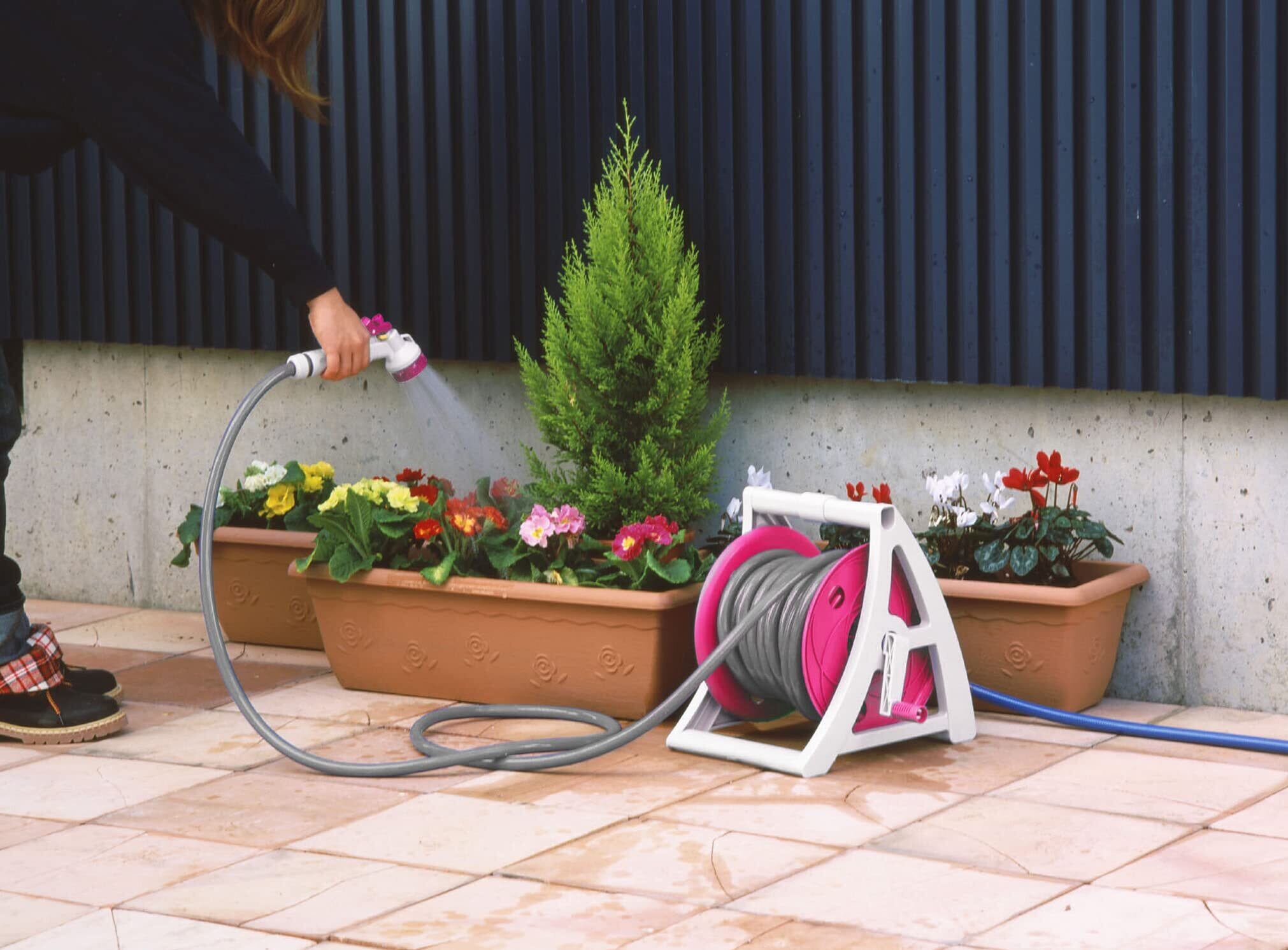 グリーンライフ ホース ホースリール 12m 軽量 ピンク おしゃれ