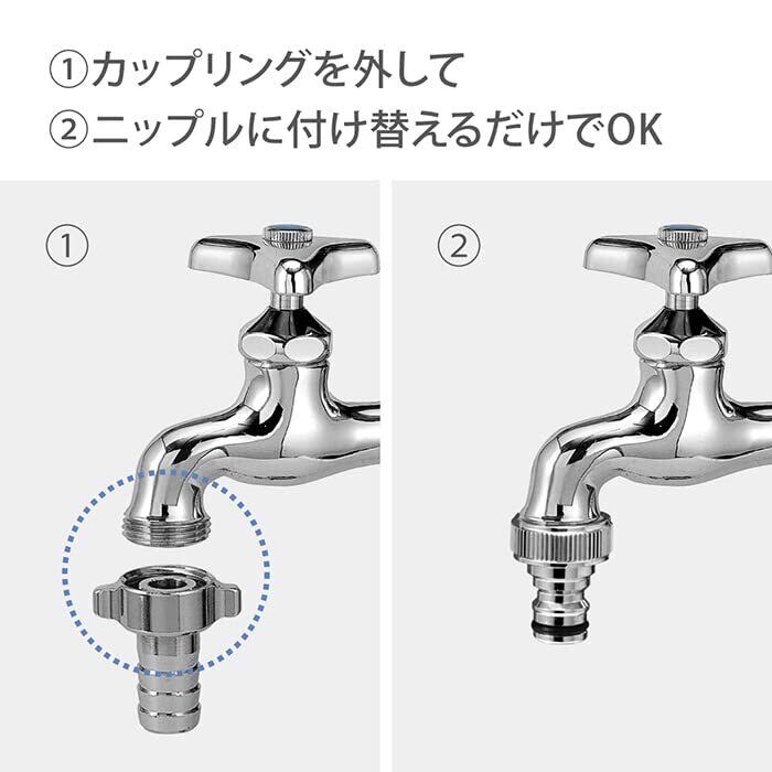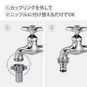 ネジ付き蛇口に取り付けて、コネクター(別売り)付きホースの取り外しがワンタッチに!取付られる蛇口はネジ付き蛇口、地下散水栓。