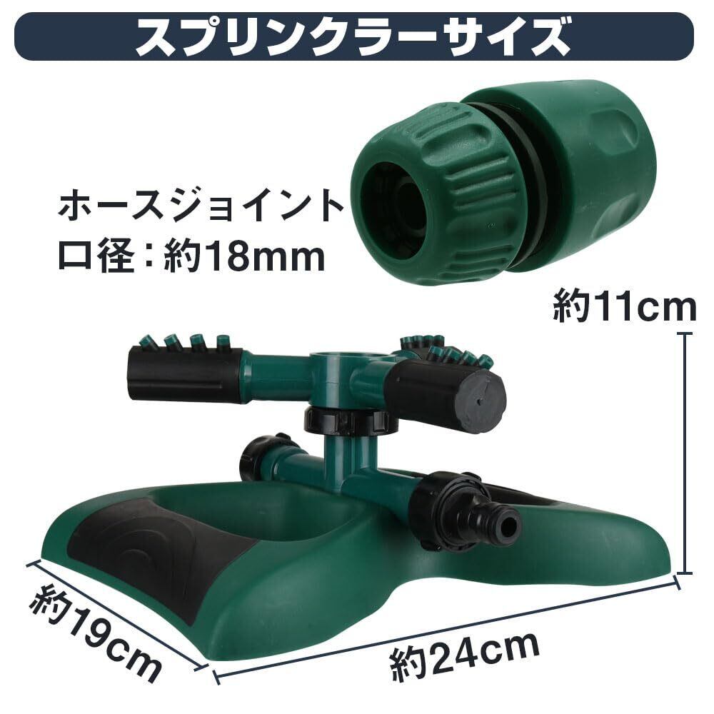 【セット内容】芝生用スプリンクラー×2点 ホースジョイント×2点 【サイズ(約)】24cm×19cm×11cm ホースジョイント:口径18mm 【カラー】グリーン 【材質】ABS