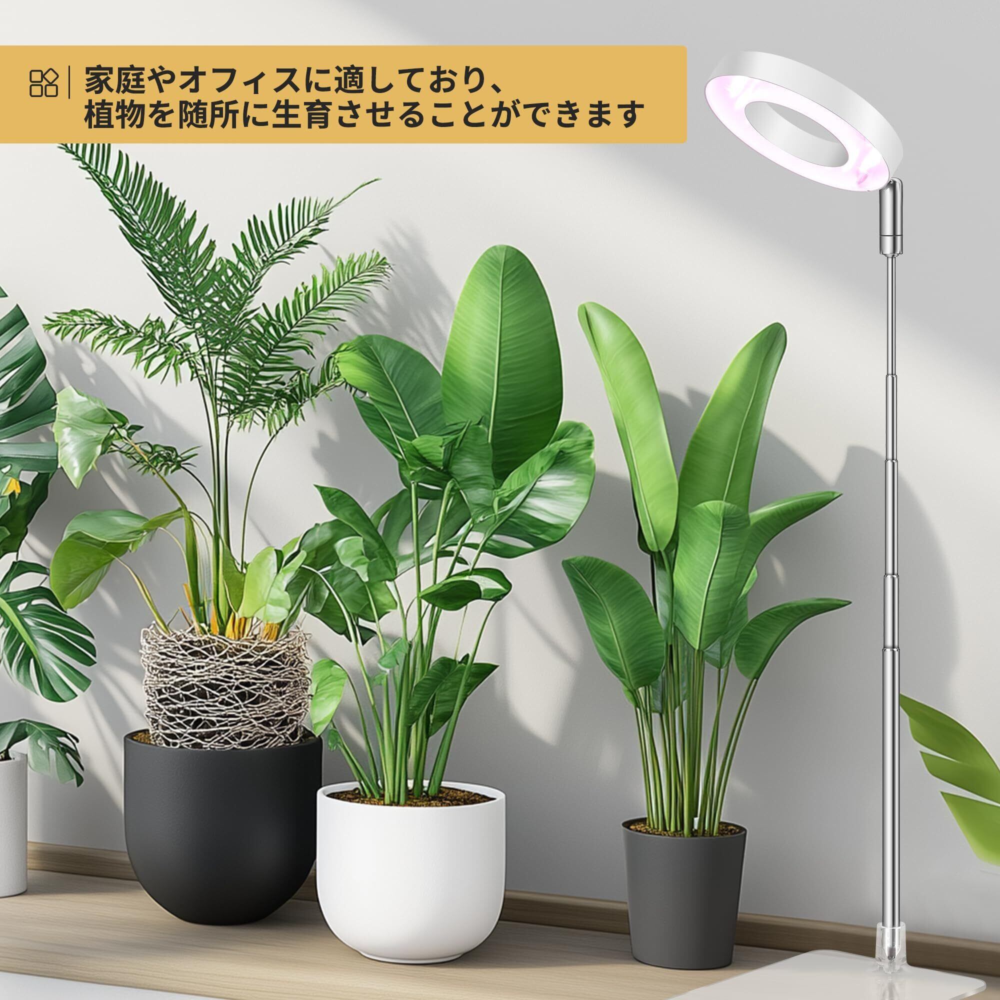 【特徴1:独立型ベース、いつでもどこでも植物を照らす】 エンジェルリング全光スペクトル植物ランプは独立型ベース設計を採用しており、土壌にランプを差し込む必要がありません。設置がより便利で、いつでもどこでも植物に十分な光を提供し、光の恵みの中で植物を健やかに成長させます。