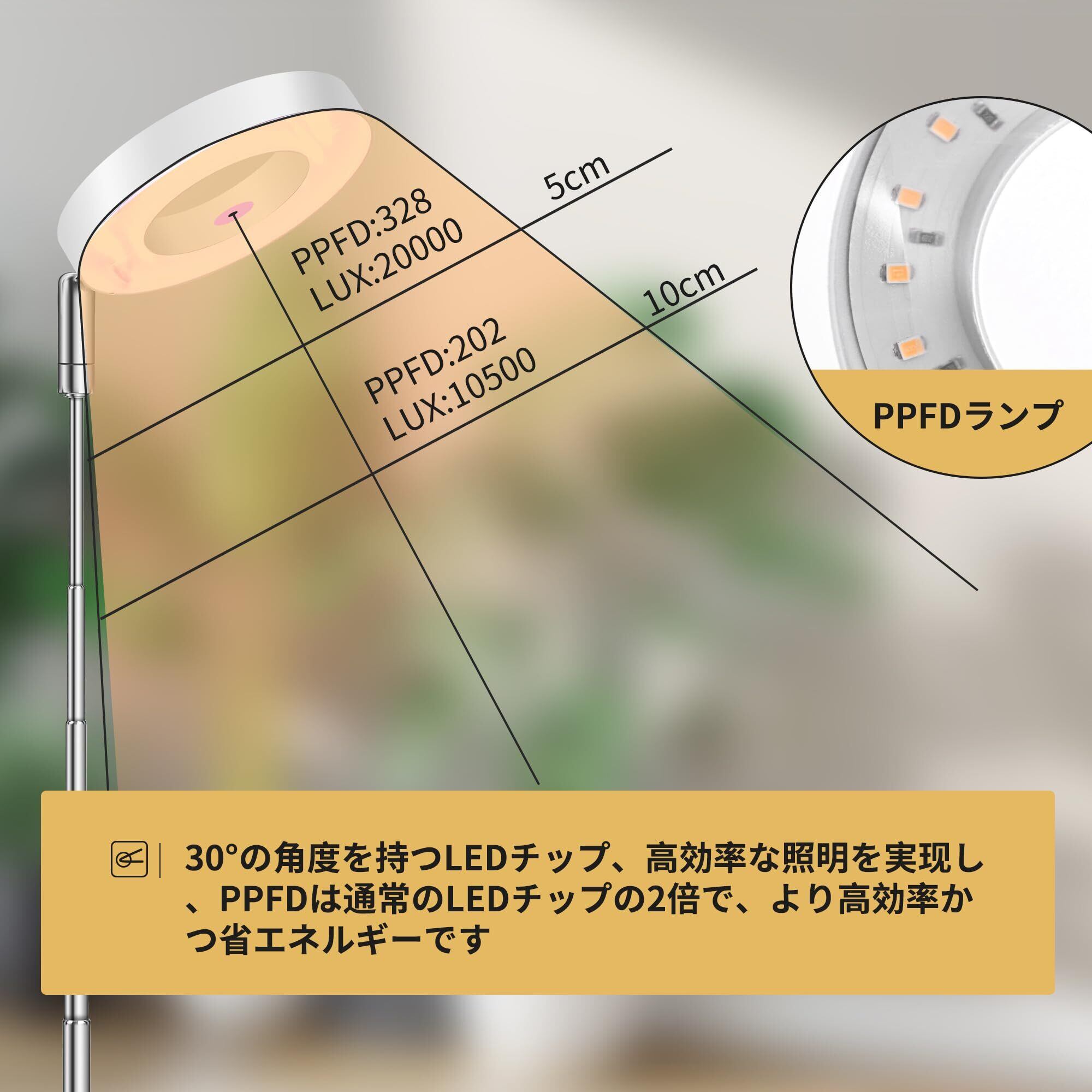 【特徴5:30度の集光LEDを使用し】 明るさがさらに高く、植物に十分な明るさを提供します。