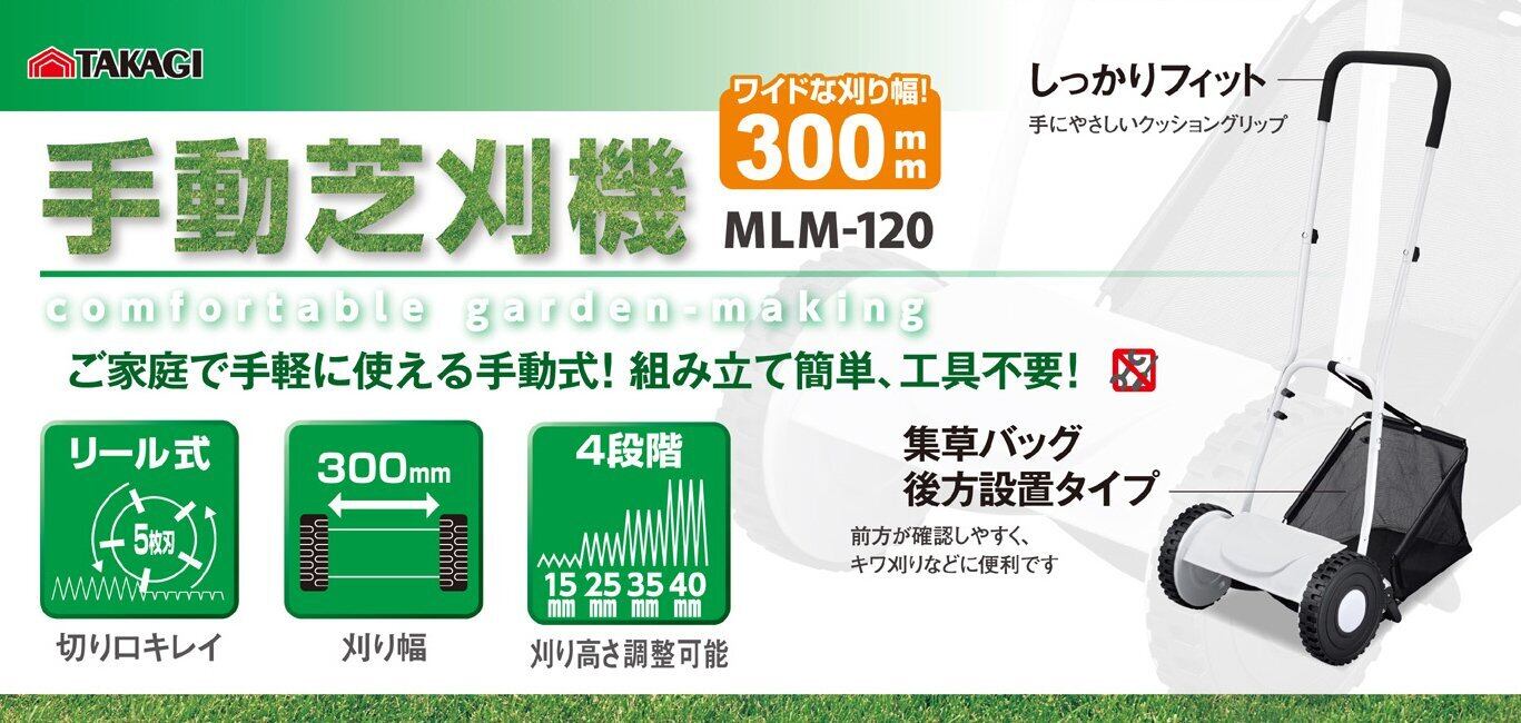 高儀(Takagi) 手動芝刈機 刈込幅300mm 刈込高さ4段階調整 5枚刃リール 簡単組み立て 工具不要 MLM-120