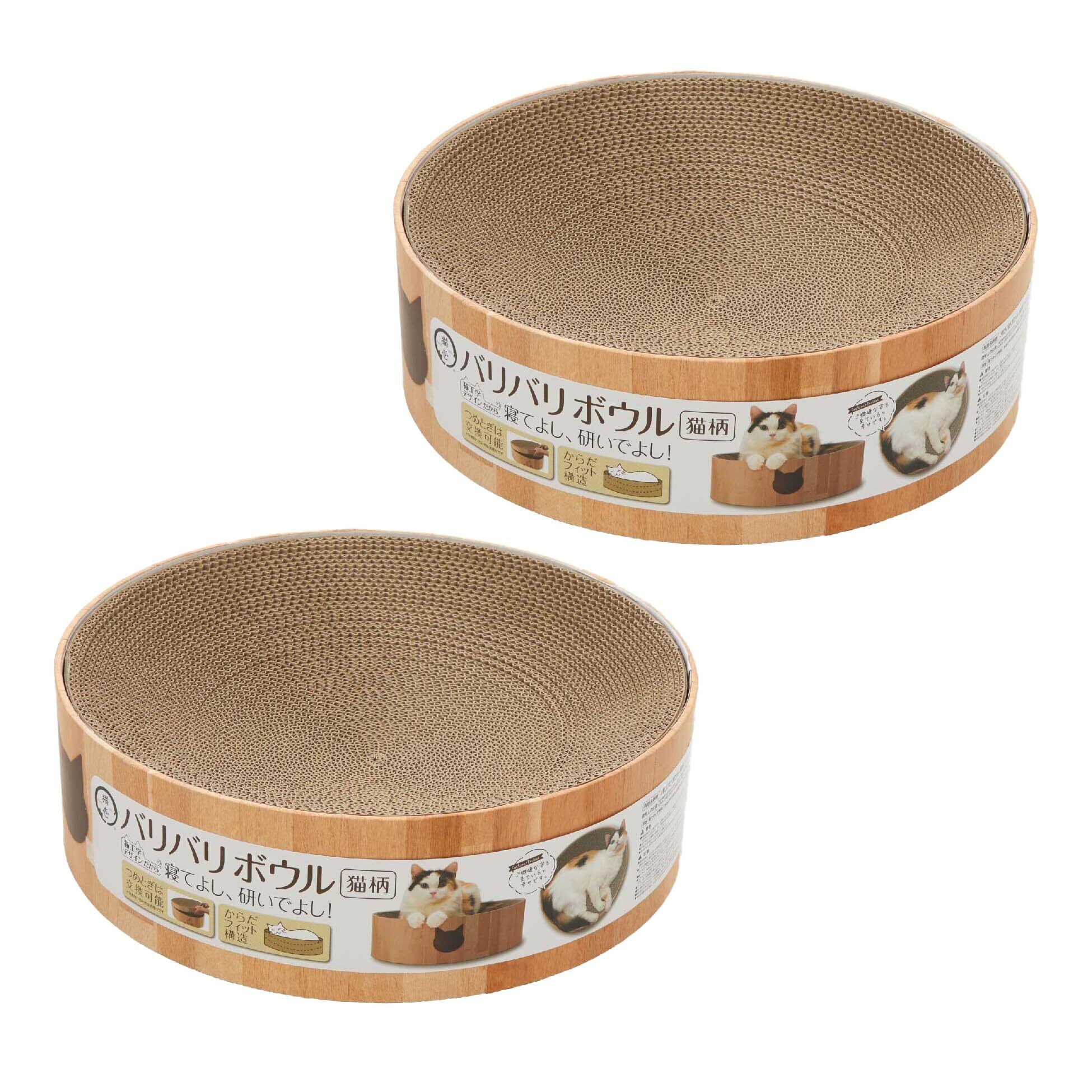 猫壱 爪とぎ バリバリボウル 猫柄 ライトブラウン レギュラー 2個セット
