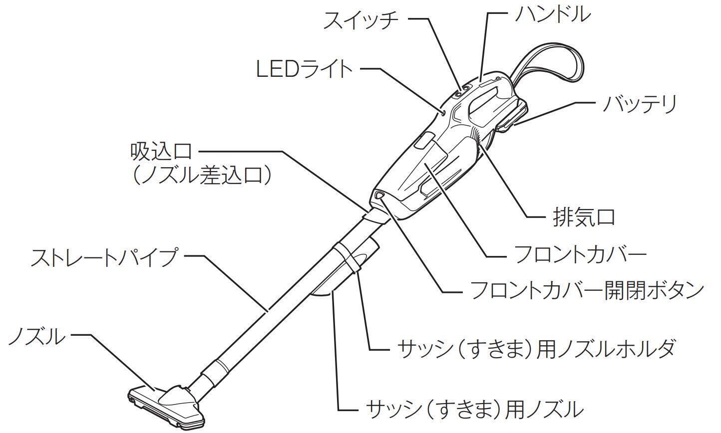 集じん容量:ダストバッグ(500mL)、紙パック(330mL) 電源:スライド式Li-ionバッテリ 直流10.8V-1.5Ah