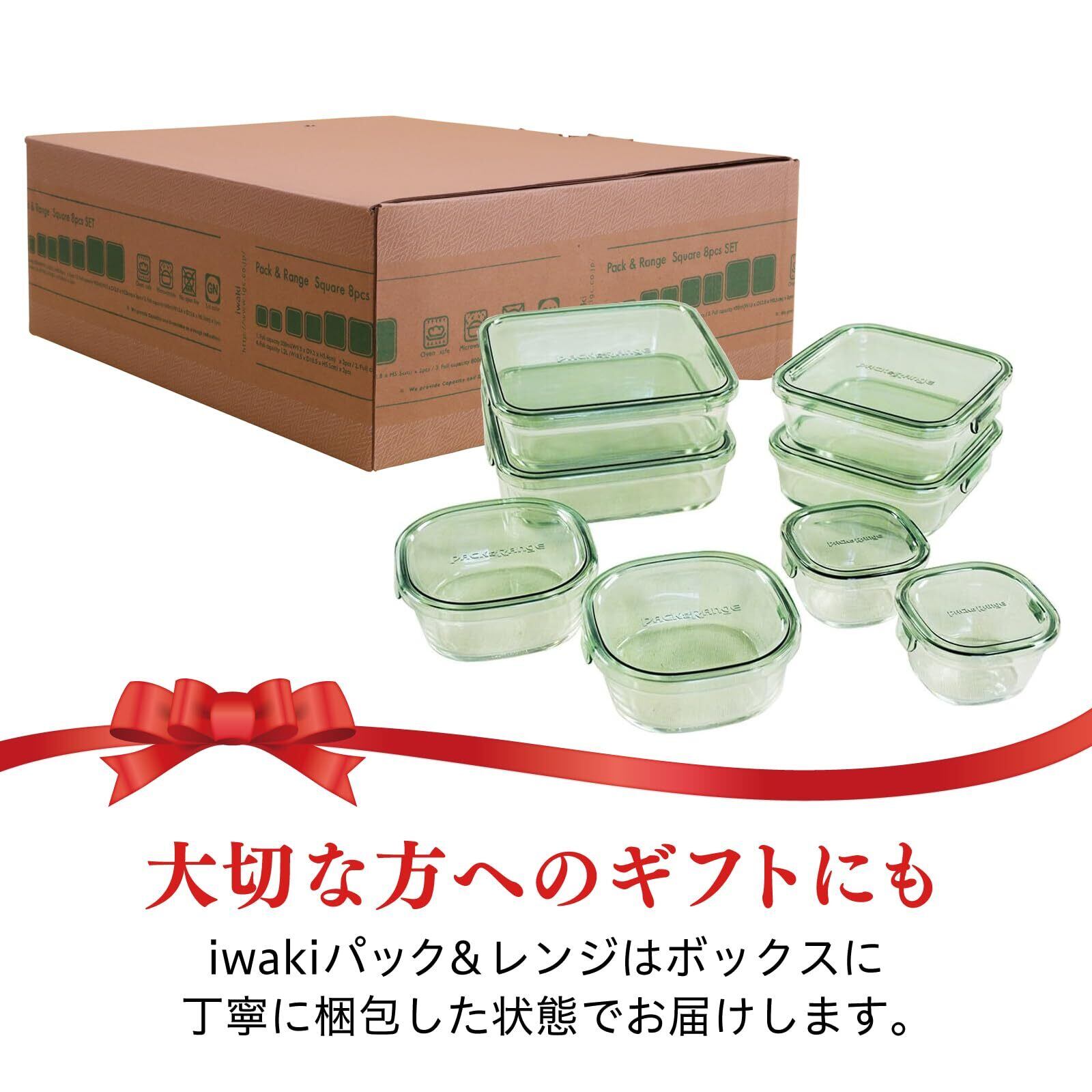 iwaki(イワキ) 耐熱ガラス 保存容器 グリーン 角型 8個セット パック&レンジ PS-PRN-8G