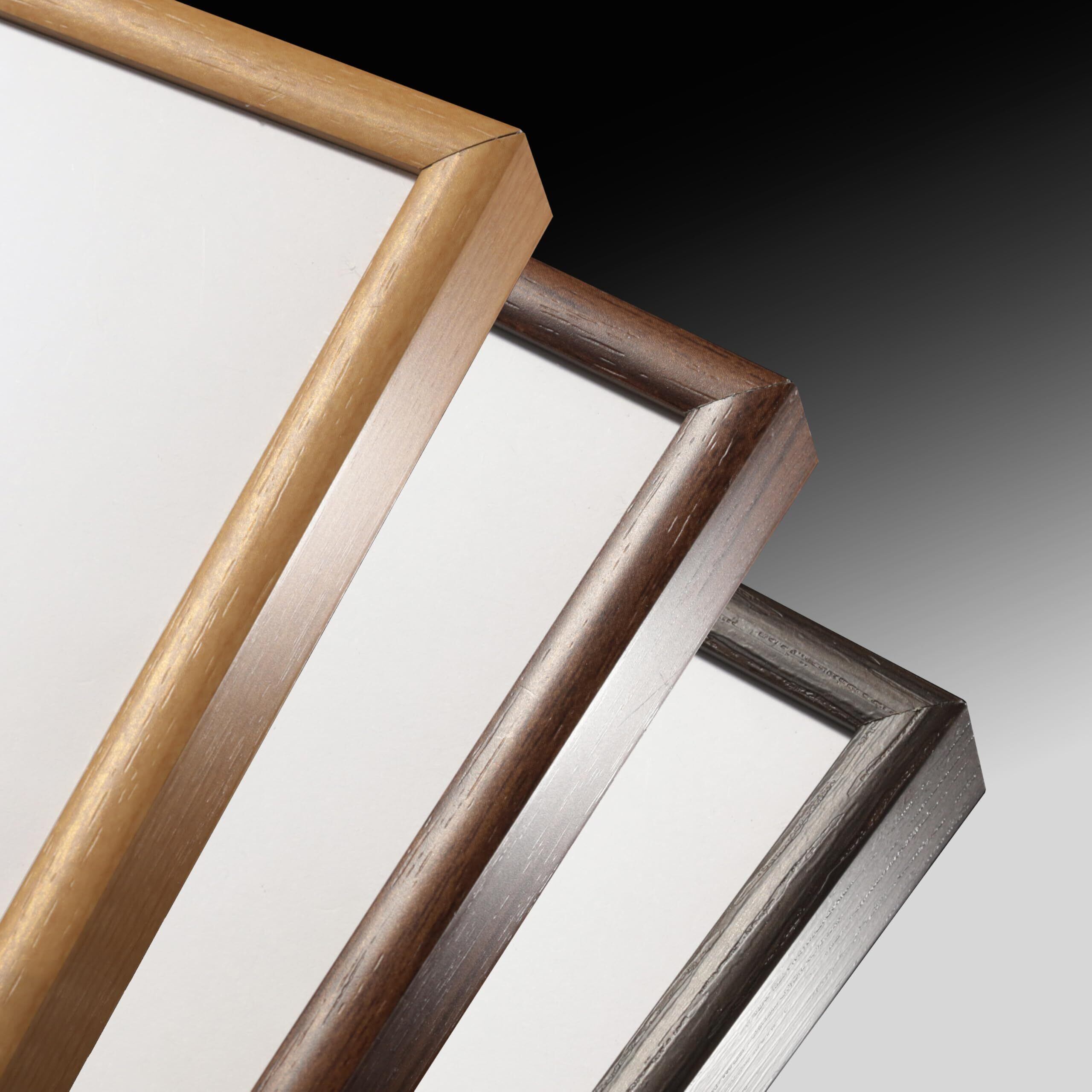 【B2サイズ】作品交換が簡単なアルミ製の軽量前開き式フレーム。フレーム柄は深いブラックウォールナットの色合いです。