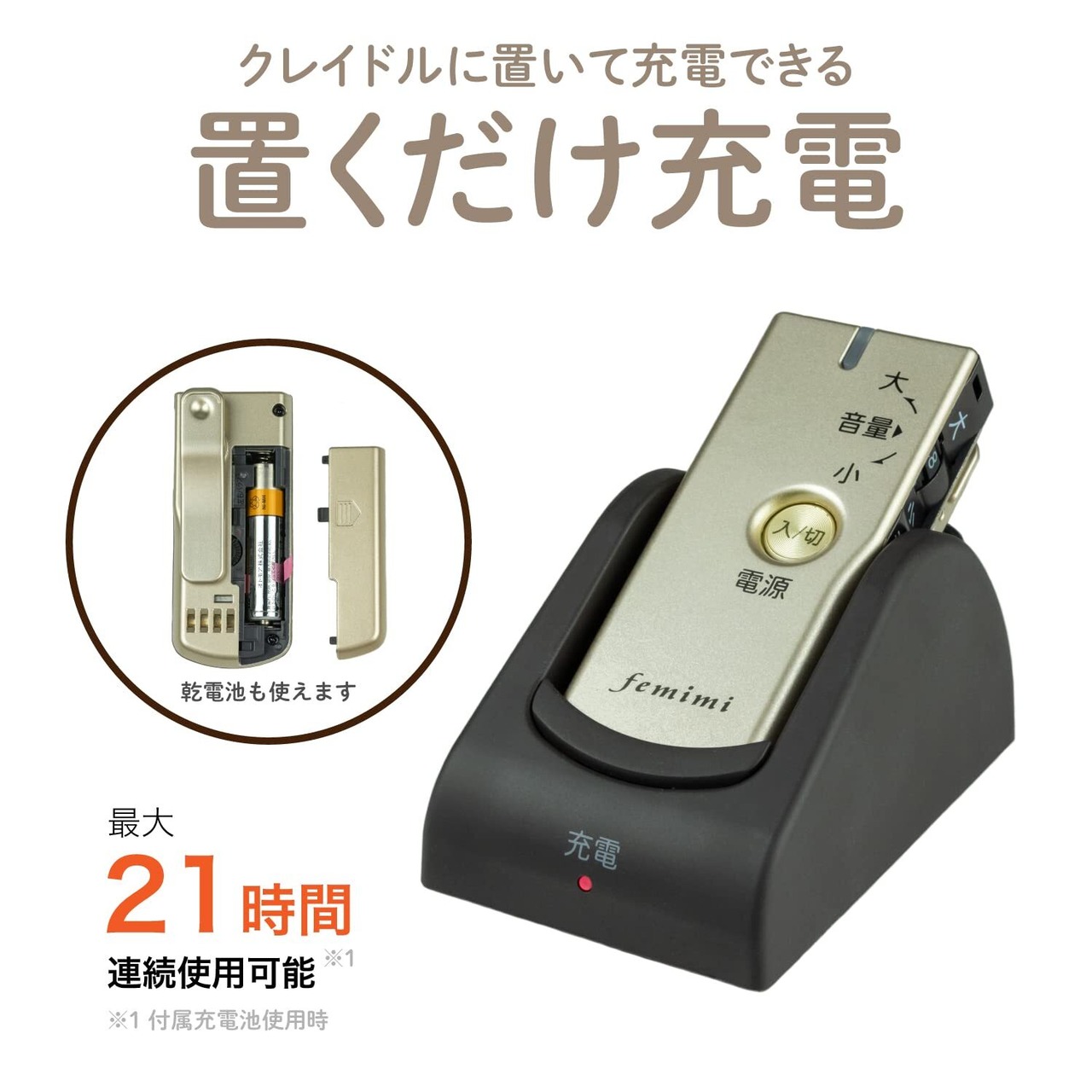 OTOMS オトムス femimi フェミミ ポケット型デジタル集音器 VR-M700 充電式 イヤホン型 単4形乾電池使用可能