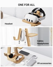 【組み立て式】ヘッドセットトレイ、サポートコラム付きヘッドストラップブラケット、タッチコントローラーベースの3つのパーツで構成され、4本のネジでしっかりと組み立てられます。 オプションのシリコンパッドと2つのケーブルクリップが付属し、利便性と機能性を強化しています。 (注:ブナ材は靭性が高く、初期取り付け時に抵抗があります。 ネジが穴の位置に対して垂直であることを確認し、慎重に取り付けてください。)